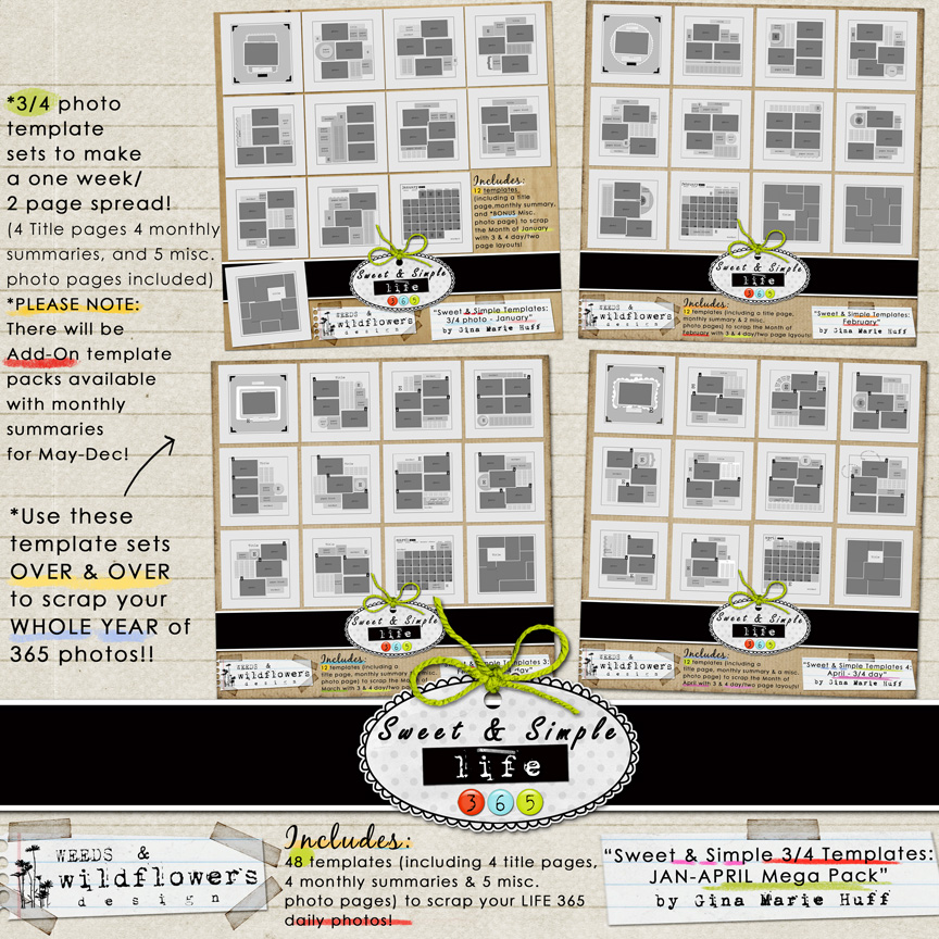 Weeds & Wildflowers: Sweet & Simple Templates 3/4 Photo Mega Pack by Gina Marie Huff
