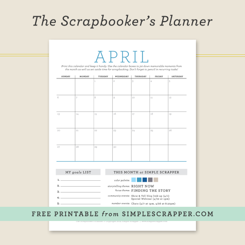Each month at Simple Scrapper we’re sharing a new free calendar for you to download and print. Use it to jot down memorable moments and make creative time a priority. We’ve even included Simple Scrapper events, so you never forget!